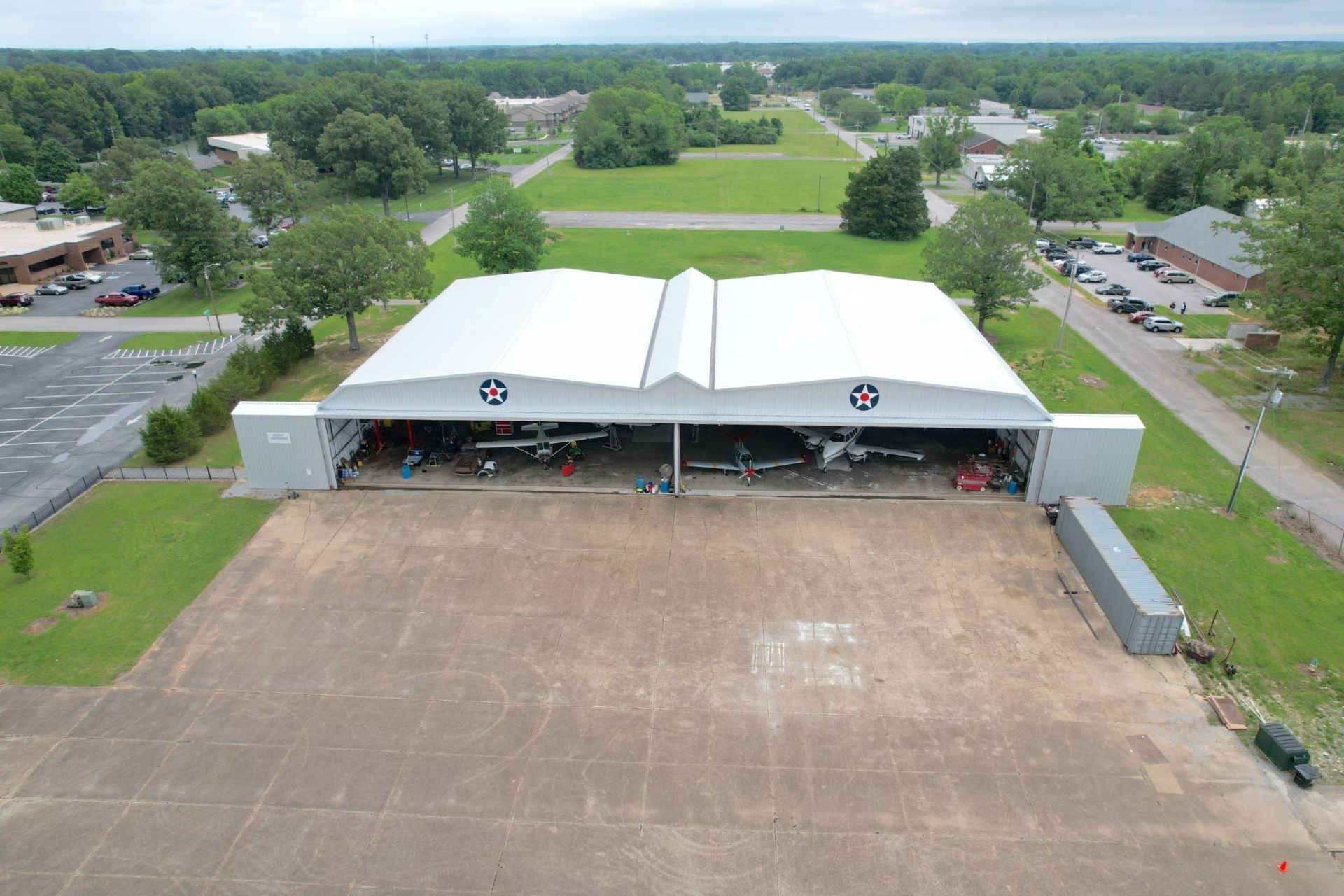 Fee-simple airport hangar investment at Tullahoma Regional Airport (THA). Rare opportunity to own both the land and a 22,448 SF restored WWII aircraft hangar - no ground lease. Property includes deeded through-the-fence access to the airfield and approximately 90' of privately owned ramp/apron directly in front of the hangar.Property is currently leased to an aviation user providing $192,000 annual income on a Triple Net (NNN) lease with 3% annual escalations through September 2029.Hangar features two 90' wide door openings with 21' clear height, 800A/460V industrial power with additional 400A service, office space, machine shop, and bathroom...read more